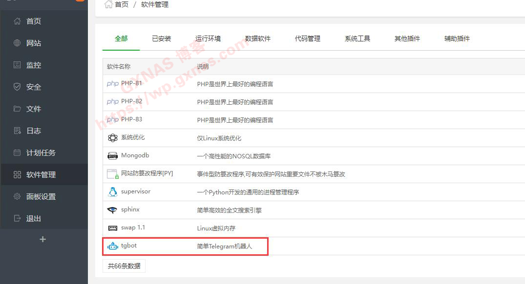 10、再看看软件管理,除了宝塔官方自带的软件都有以外,老子面板还比宝塔多了一些好用的东西,话不多说了,自己看吧。
