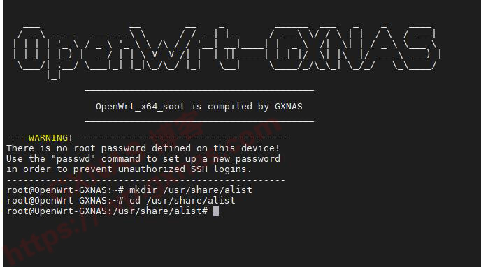 4、敲命令回车,建立/usr/share/alist文件夹: