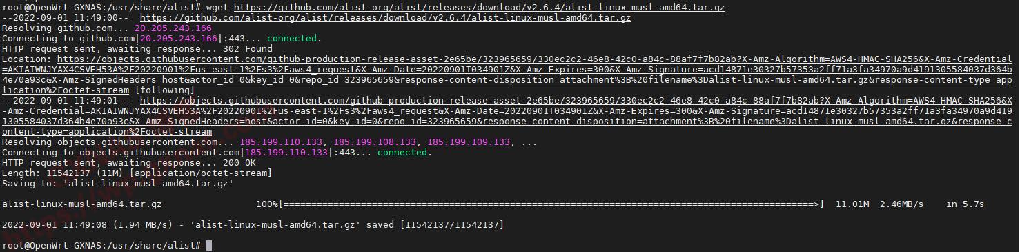 wget https://github.com/alist-org/alist/releases/download/v2.6.4/alist-linux-musl-amd64.tar.gz