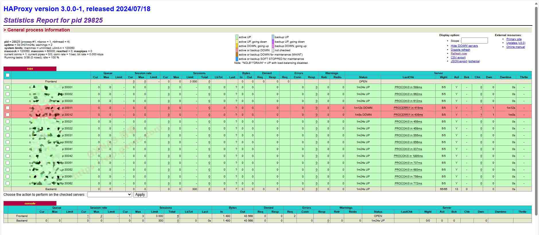 10、能看到如下图的信息就表示负载均衡已设置好节点(绿的表示该节点正常,红的表示该节点不通);