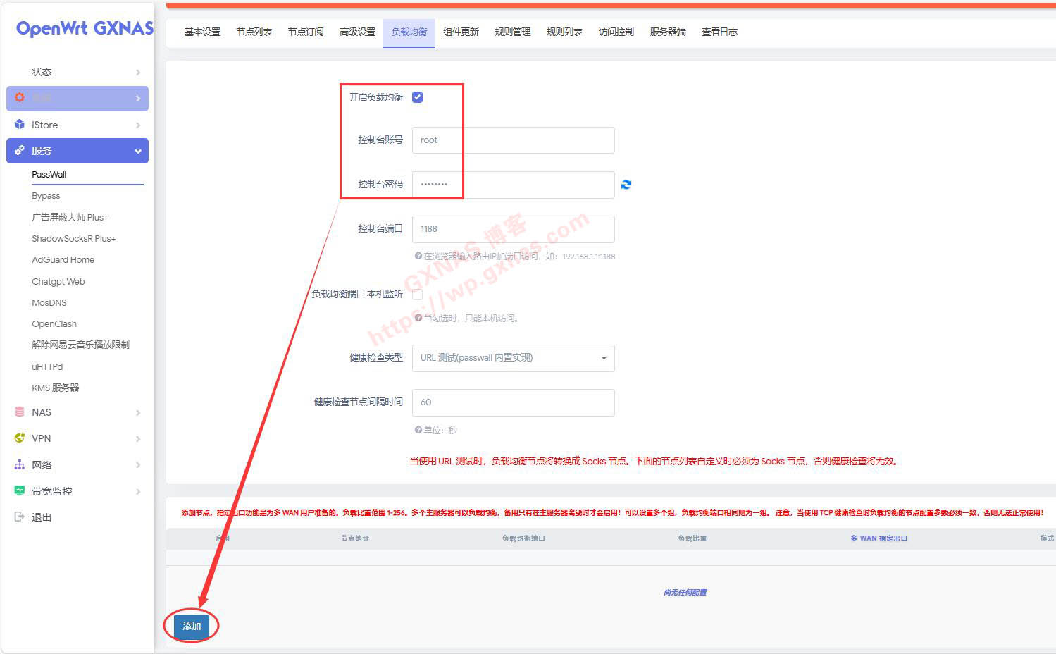 7、根据自己实际情况把需要使用的节点添加进来(我是把所有的节点全部添加进去),同一个机场负载均衡端口用同一个(这个端口号记录下来,后面要用到),如果有多个机场的,负载均衡端口要设置不同的端口,添加完成后,点右下角“保存&应用”;