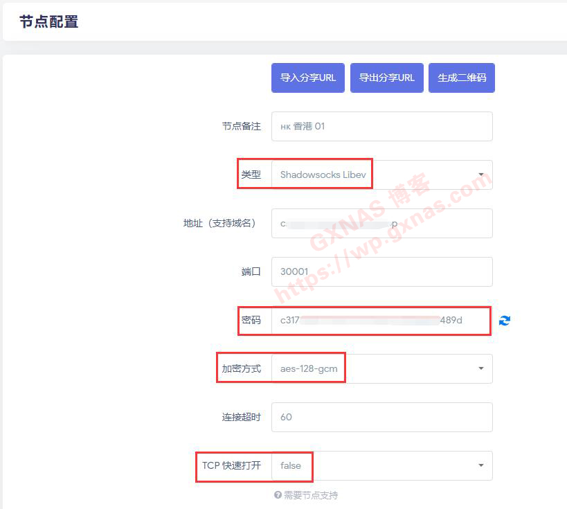 4、核对一下类型、密码、加密方式、TCP快速打开,确保所有的节点这四个参数都是一样的;