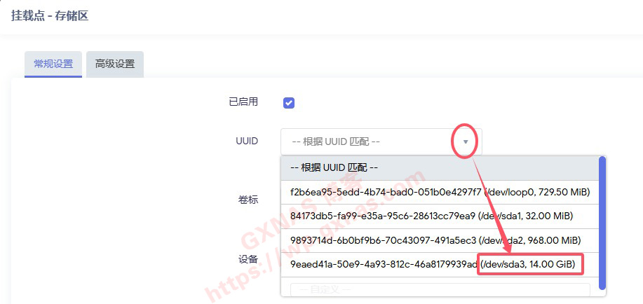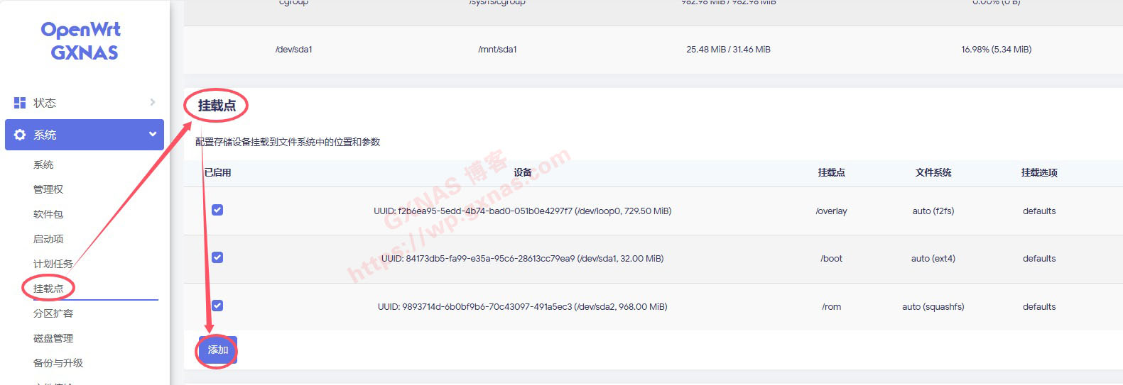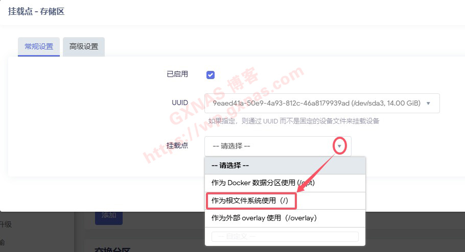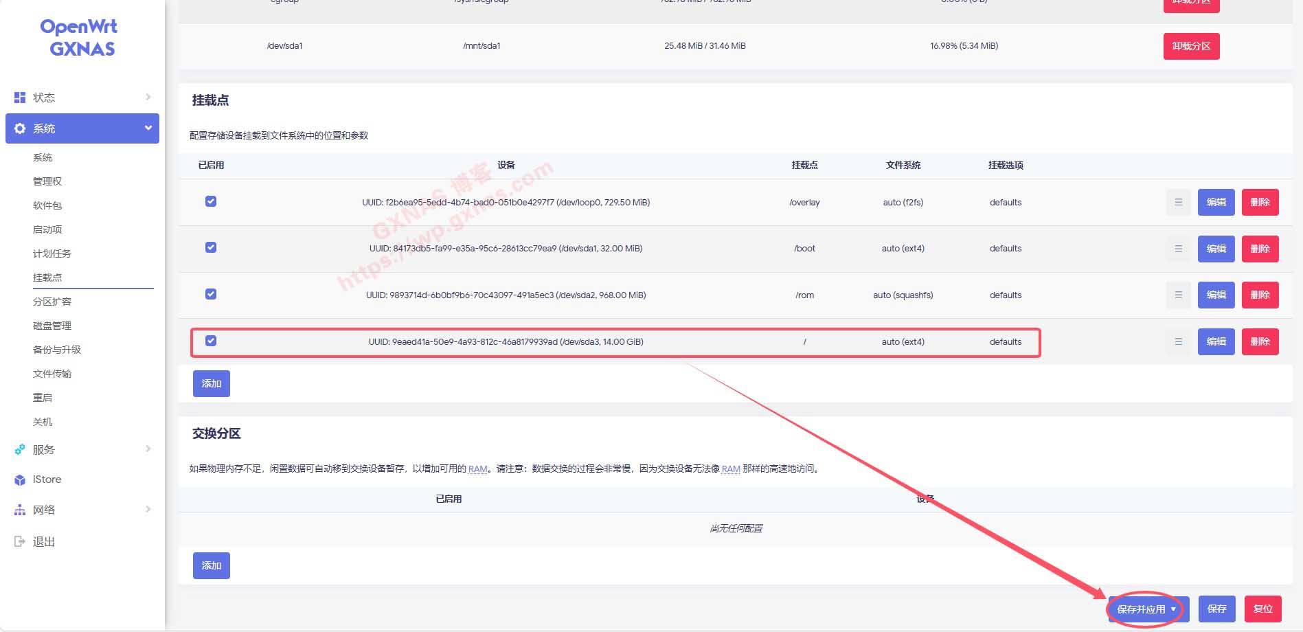 18、确认一下14g挂载点已经添加,已启用打勾,保存并应用;