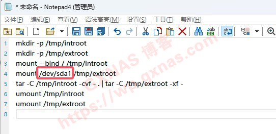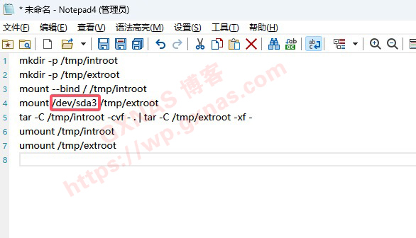 19、把刚才第16个步骤复制的命令,粘贴到记事本中,找到/dev/sda1;