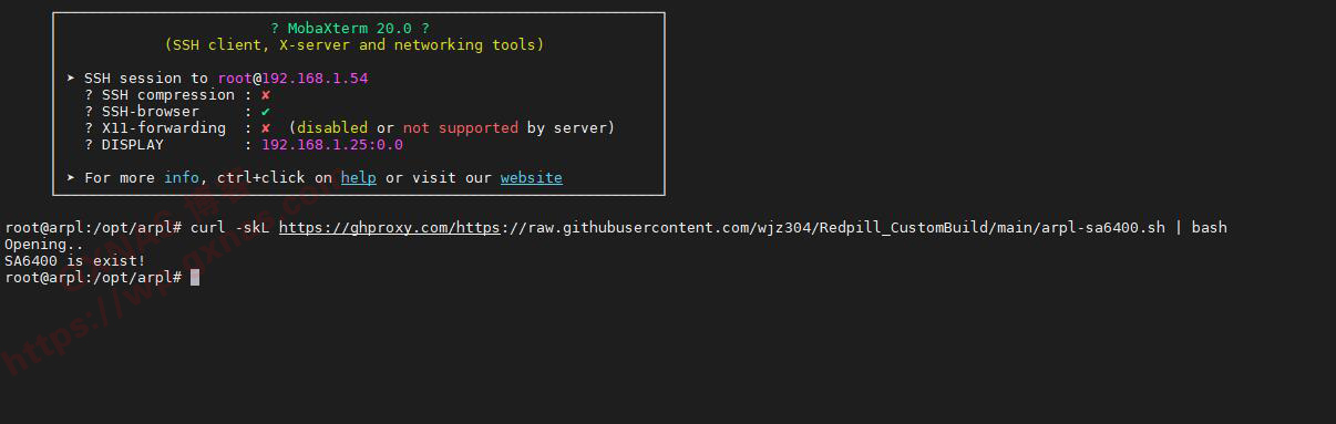 curl -skL https://ghproxy.com/https://raw.githubusercontent.com/wjz304/Redpill_CustomBuild/main/arpl-sa6400.sh | bash