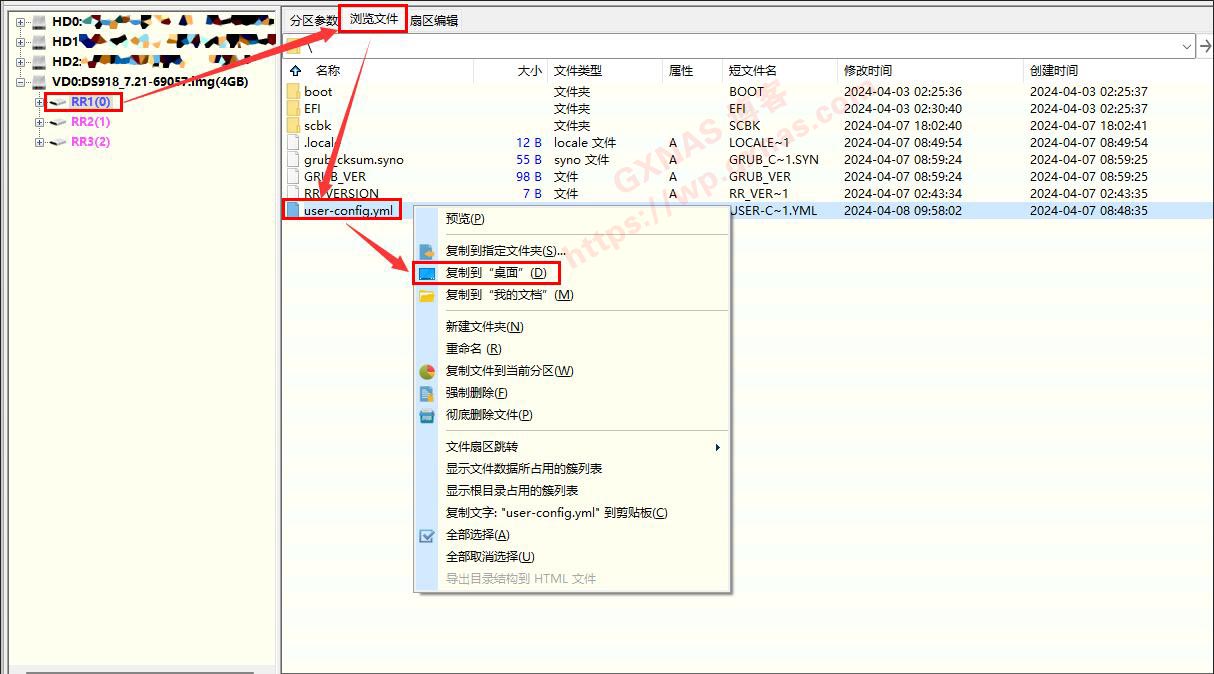 14、修改完成后,把修改好的user-config.yml文件替换到Diskgenius中,重启NAS就生效了;