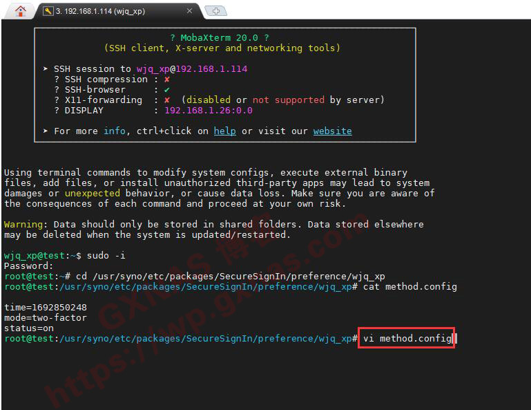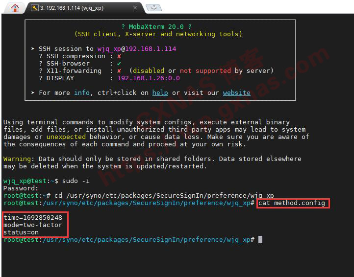 4、假如你使用的群晖不是官方机器,单一验证(批准登录)或者双重验证失灵了,但是刚好控制面板刚好启用了SSH功能,那么可以在同一局域网内的任意一台电脑,使用SSH工具(本教程使用MobaXterm)用管理员登录到群晖SSH下;