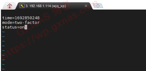 7、输入以下命令回车,查看配置文件内容,time为时间,mode为验证模式(写two-factor为双重验证,写passwordless为密码登录),主要看第三项status=on表示已启用Secure SignIn验证;