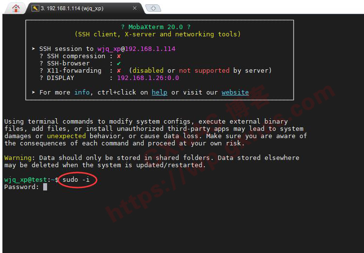 5、输入sudo -i回车,输入管理员密码回车,进入到root状态下;