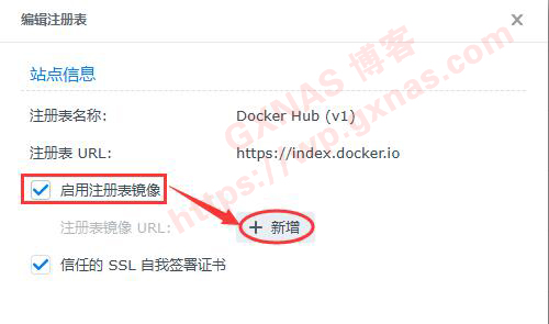3、勾选“启用注册表镜像”,新增;