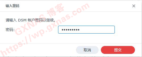 5、输入群晖当前登录的管理员账号密码,提交;