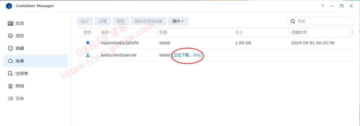 这是没有添加镜像服务器之前,下载容器进度会一直显示0%;