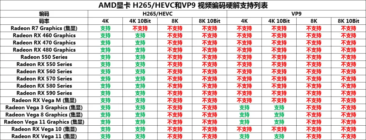 目前完美支持H265和VP9编码8K 10Bit视频硬解的英特尔核显列表:
