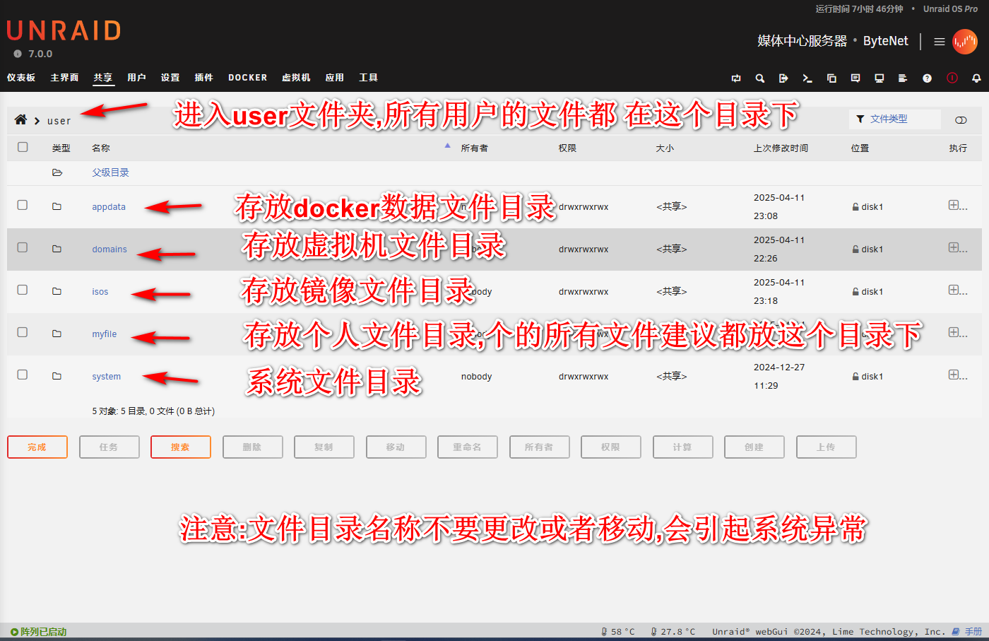 4.Unraid系统的目录介绍: