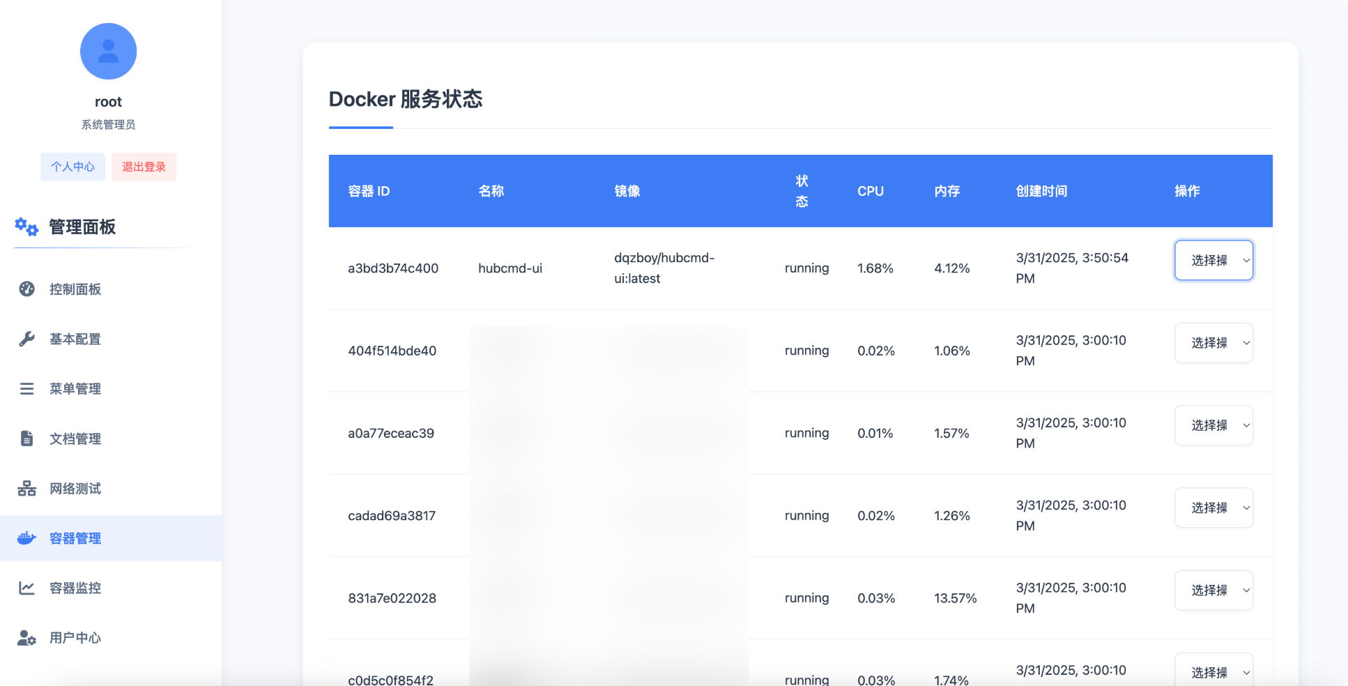 控制面板容器管理