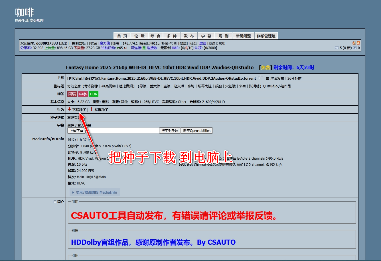 下面以咖啡PT站点为例,其它站点大同小异,介绍下如何手动刷流.