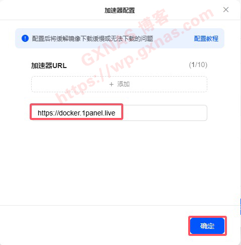 10、以下是docker公益加速器的地址,随便选一个或者若干个填写进去,确定;