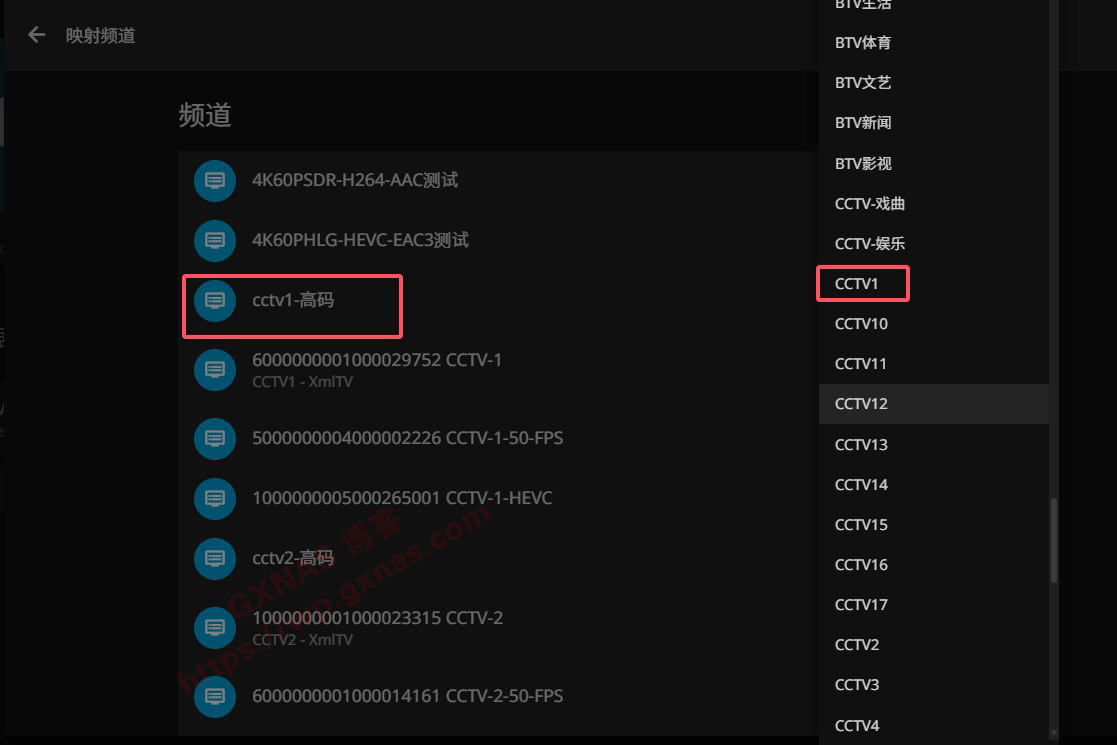 26、由于名称显示的原因,有些频道并未自动映射,所以需要根据具体没映射的频道,手动去映射频道;