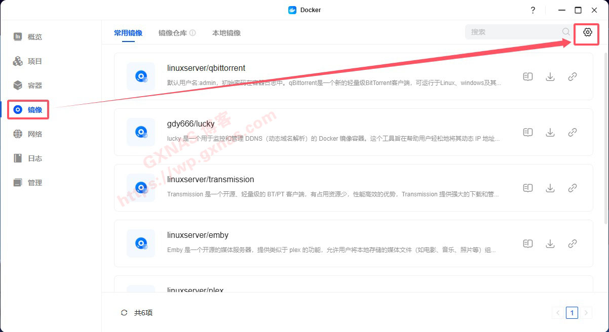 8、打开docker,镜像,点右上角的设置按钮;