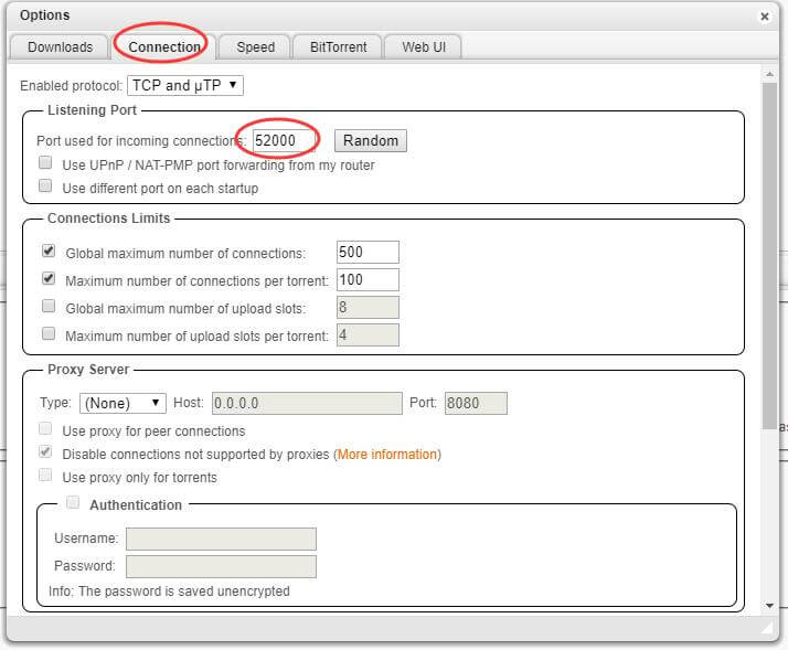 28、在Connectio标签栏中,Port used for incoming connection设置下载端口,我设置为52000