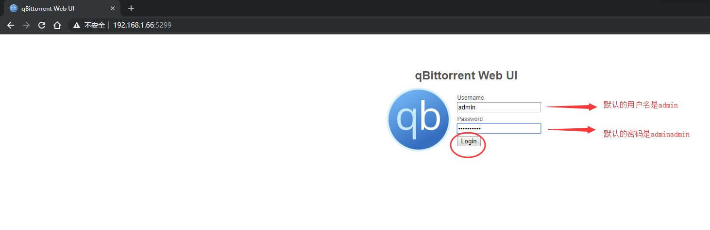 24、此时链接可能会有尾巴,请把尾巴删掉,仅保留http://群晖的内网IP:5299,输入系统默认的用户名admin和默认密码adminadmin,点Login