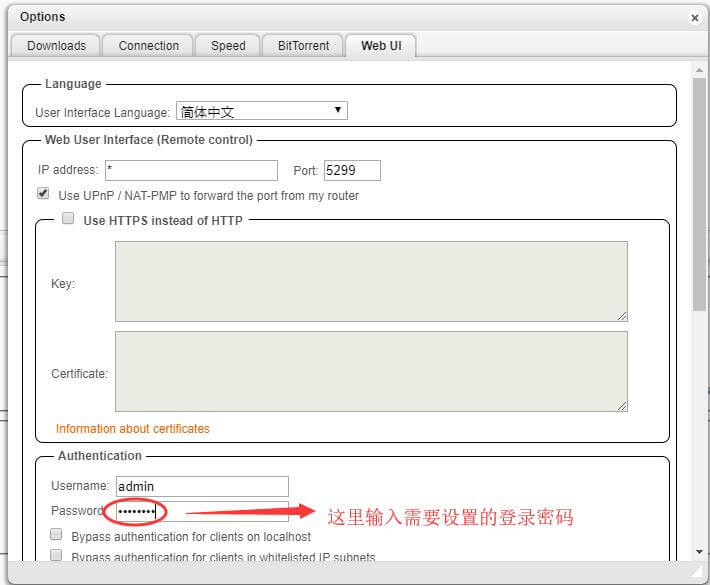 27、继续在Web UI标签栏的中部,找到Passwod这栏的右边,输入你需要设置的登录密码