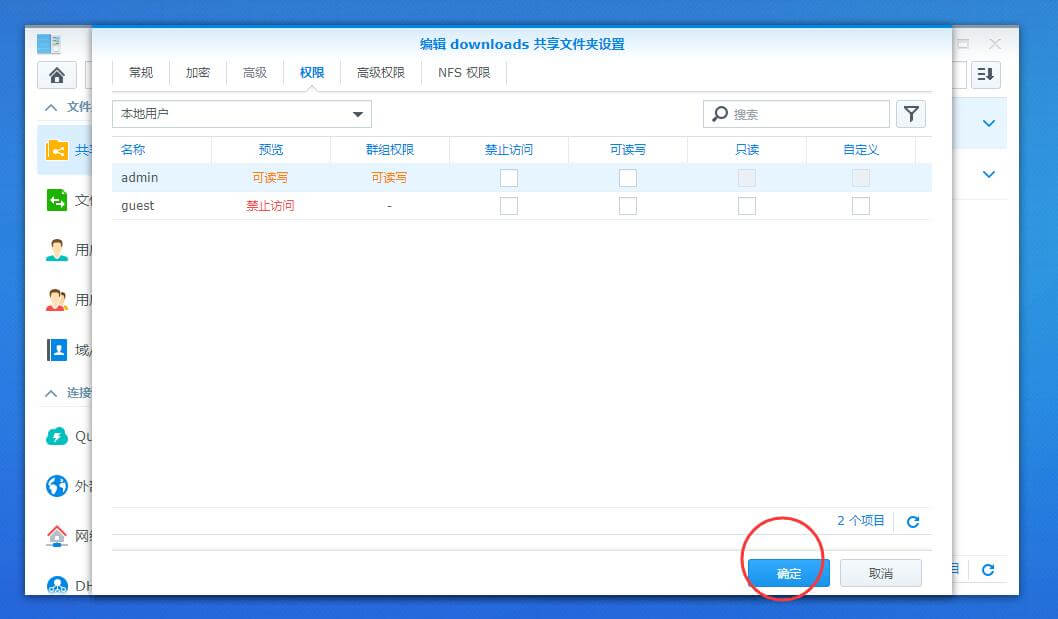 1、打开控制面板,共享文件夹,新增一个共享文件夹,我这给的文件夹名字是downloads