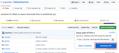 打开 BaiduExporter 的github页面,在master分支下,选择右侧的 Clone or download 项下的 Download Zip ,右击选择 “复制链接地址” 。