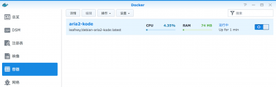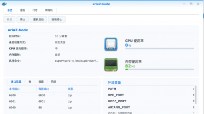点击顶部的 “详情” 选项,可以查看容器 aria2-kode 的信息。